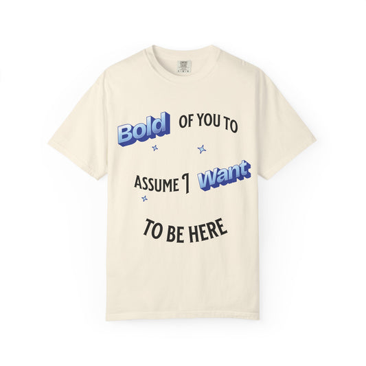 Graphic Tee — "Bold of You to Assume I Want to Be Here" Casual Statement T-Shirt
