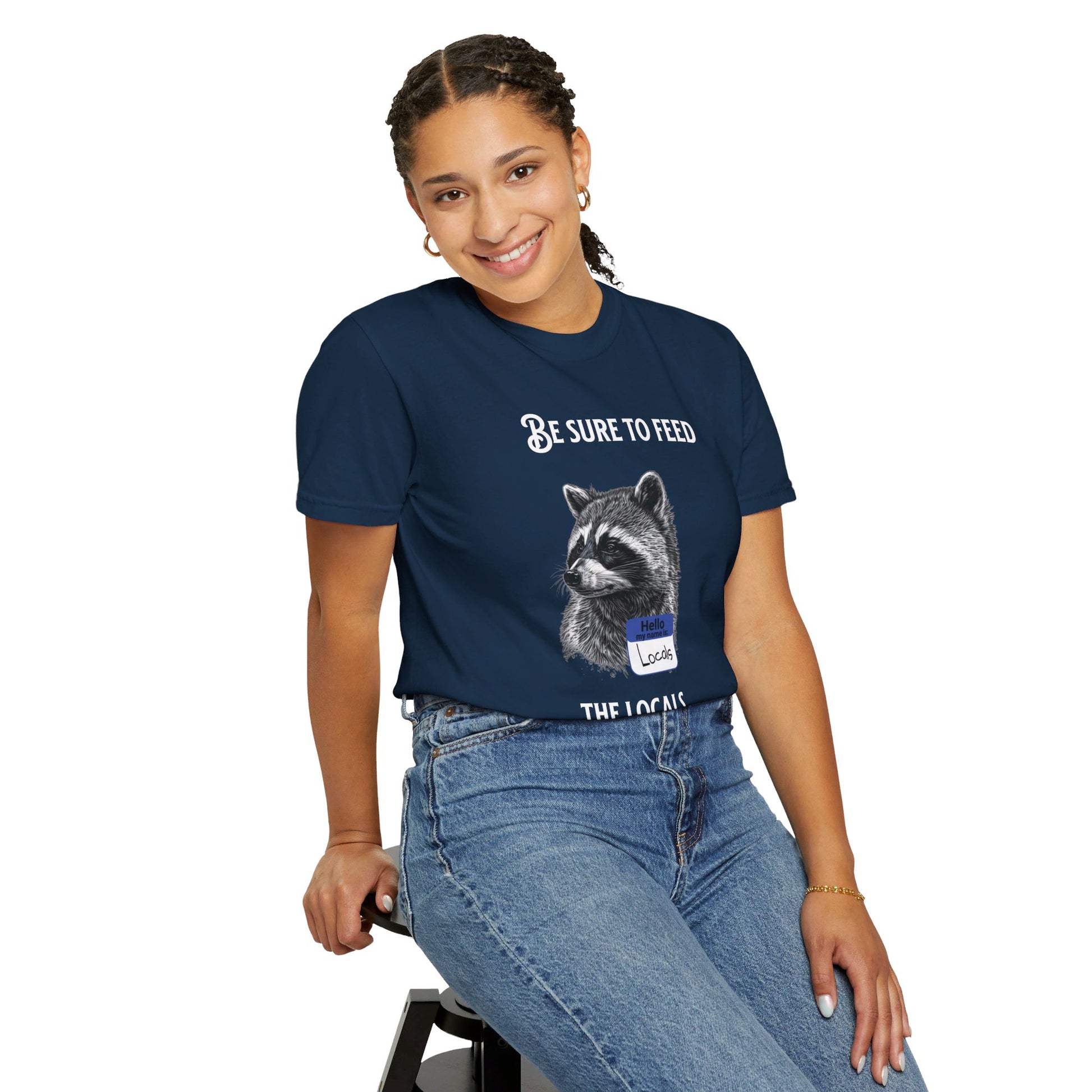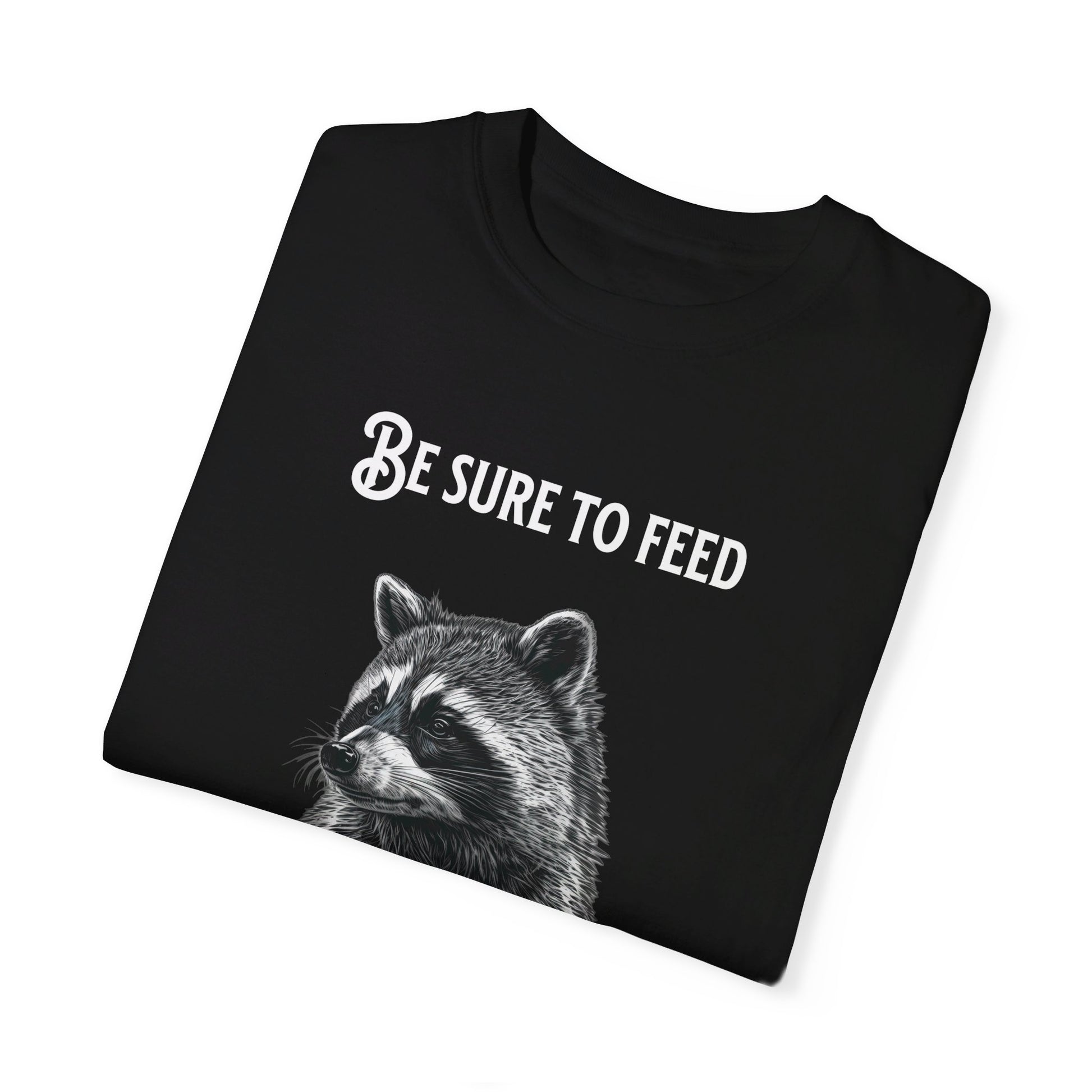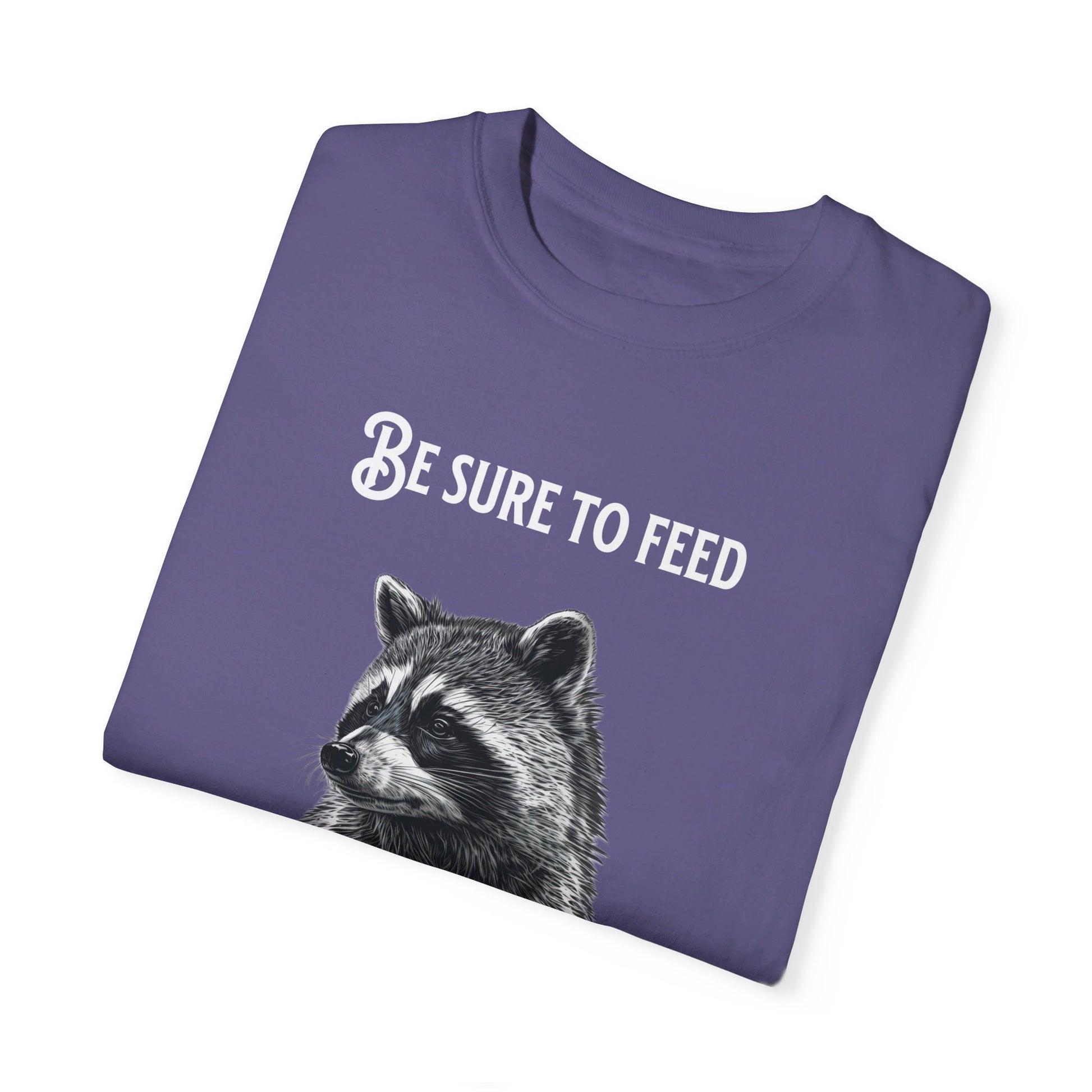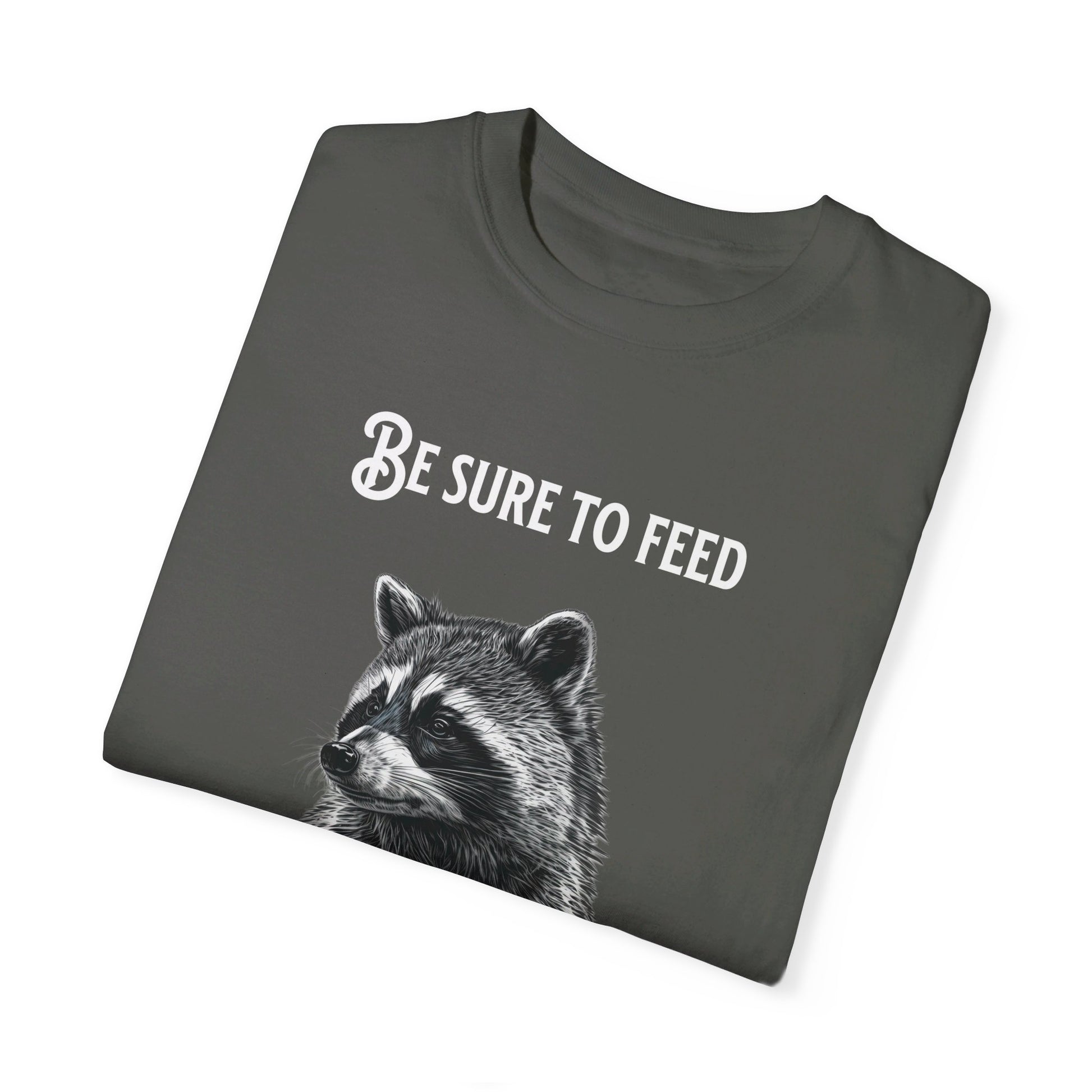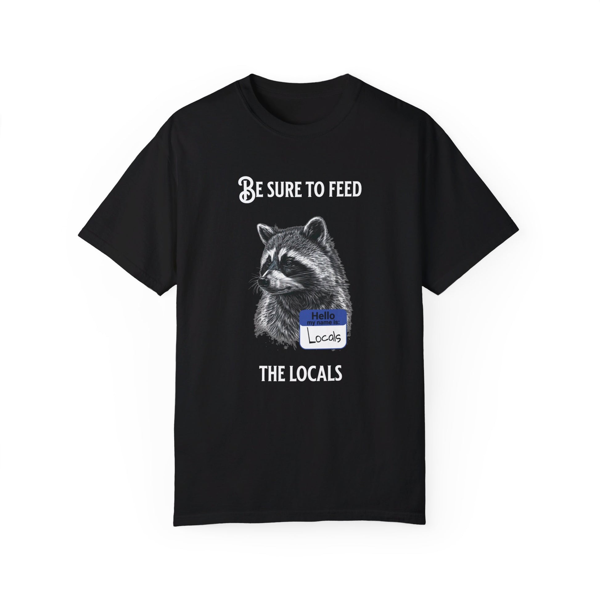Be sure to feed the locals Racoon t-shirt, White text